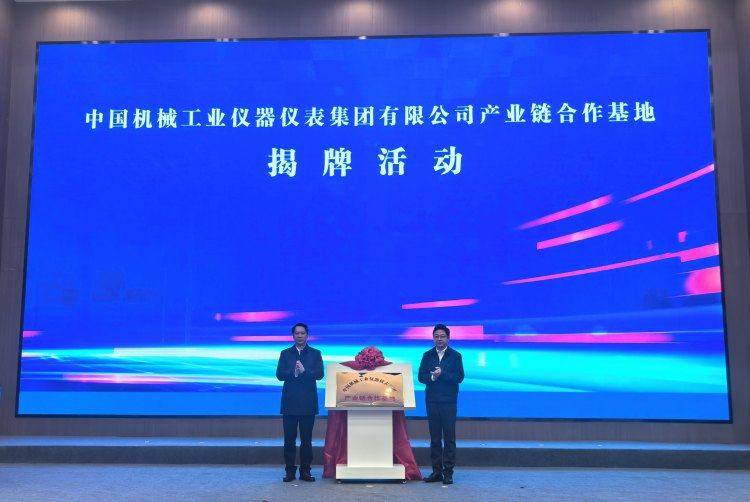 垫江县委陈德川取国机仪器仪表集团董事长李赐犁配合为财产链合做揭牌。
